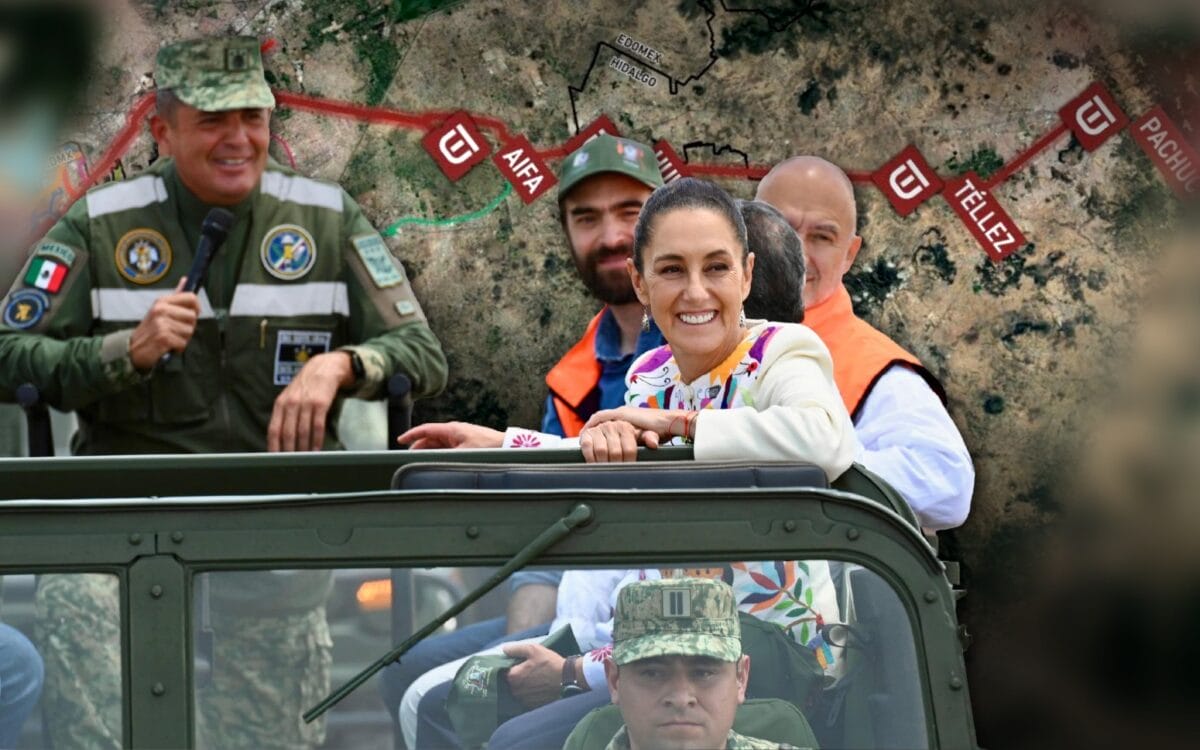 NacionalPolítica México10 agosto 2025Sheinbaum supervisa avances del Tren Interurbano Pachuca-CDMXIngenieros militares ya trabajan en el aplanado del terreno por donde correrá la vía férrea