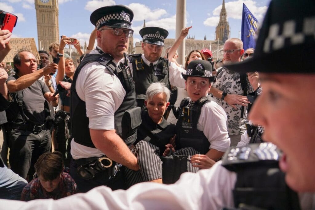 Los manifestantes que facilitaron su identidad quedaron en libertad bajo fianza con la condición de no asistir a futuras protestas vinculadas al grupo. Quienes se negaron, fueron trasladados a distintas comisarías de Londres.