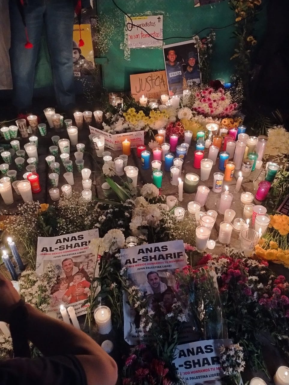 Decenas de periodistas, activistas y ciudadanos se congregaron la noche del martes en el Ángel de la Independencia para rendir homenaje a cinco comunicadores palestinos de Al Jazeera asesinados recientemente en la Franja de Gaza por el ejército israelí. Entre veladoras, flores y fotografías, los asistentes exigieron justicia y un alto inmediato a los ataques contra la prensa en zonas de conflicto.