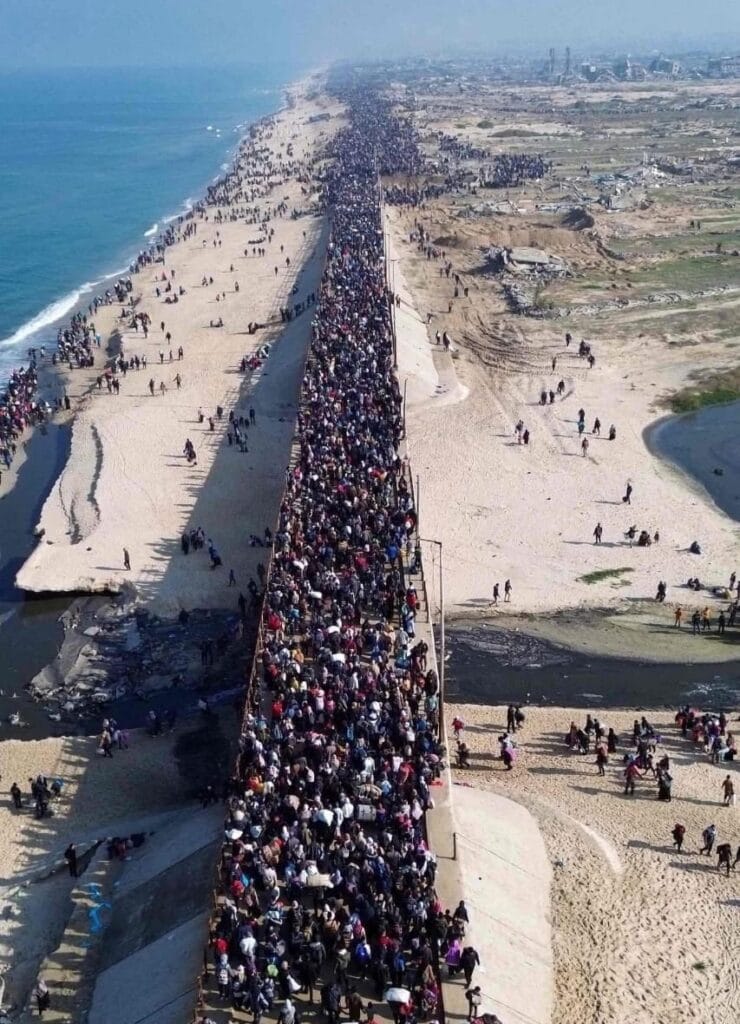 Los primeros contingentes de civiles comenzaron su marcha hacia el norte por la carretera costera de Al Rashid, en las inmediaciones de Nousseirat, mientras otros grupos se desplazaban hacia la ciudad de Jan Yunis, en el suroeste del enclave.