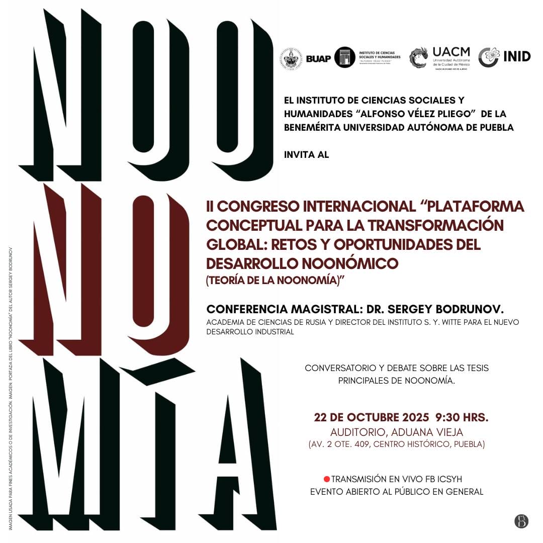 El evento es organizado por la BUAP en colaboración con la UACM y el INID, y busca abrir un diálogo plural sobre los desafíos del desarrollo noonómico en el contexto de la transformación global.