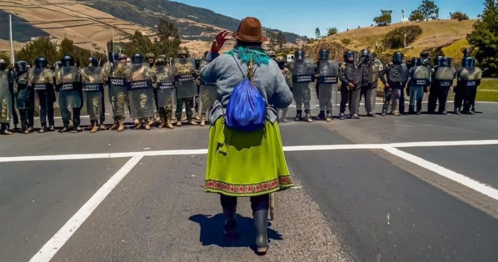 “En respuesta a la llegada de Daniel Noboa, se desató una violencia orquestada contra el pueblo movilizado. Denunciamos detenciones arbitrarias y agresiones a mujeres de la tercera edad”, expresó la organización en un comunicado.