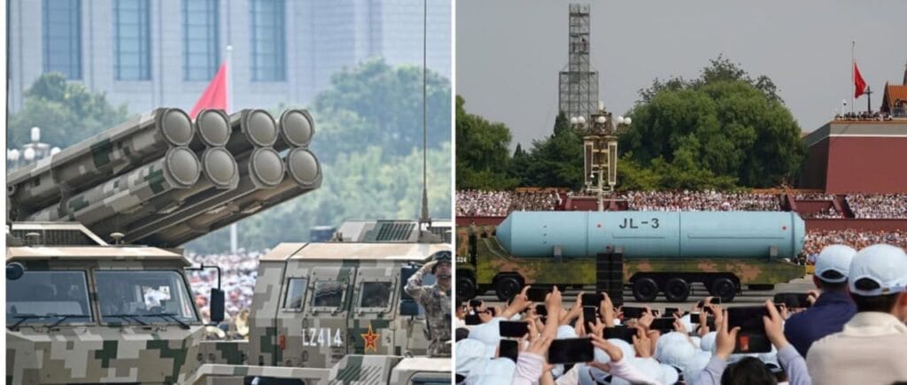 El desfile incluyó misiles hipersónicos antibuque, sistemas de defensa aérea de última generación y misiles nucleares intercontinentales que se presentaban por primera vez al público. Helicópteros formaron en el cielo el número 80, mientras tropas perfectamente sincronizadas marchaban al grito de lemas como “¡para la victoria luchamos!” y “¡la paz vencerá!”.