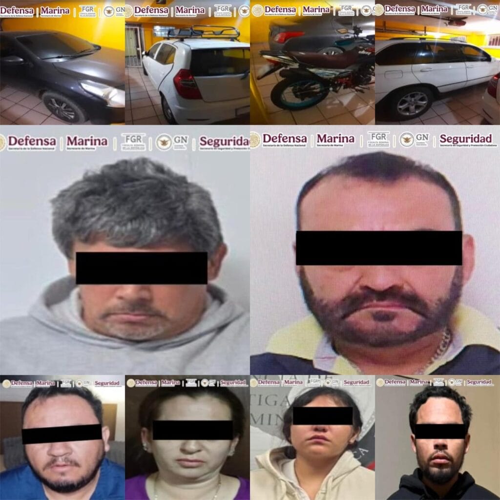 Entre los capturados se encuentran también Diana Estefanía Villalobos Rueda, “La Patrona”; José Juan Quiñones Galván; Rocío Quiñones Galván, “La Licenciada”; José Raymundo Freyre Mendoza; y José Orlando Barrientos Hernández.