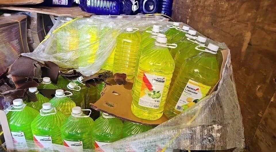 Elementos del Ejército y la Guardia Nacional interceptaron un cargamento de metanfetamina líquida oculto en garrafones de “limpiador multiusos” durante una inspección en el puesto militar “Estación Doctor”, en San Luis Río Colorado, Sonora, cerca de la frontera con Estados Unidos.