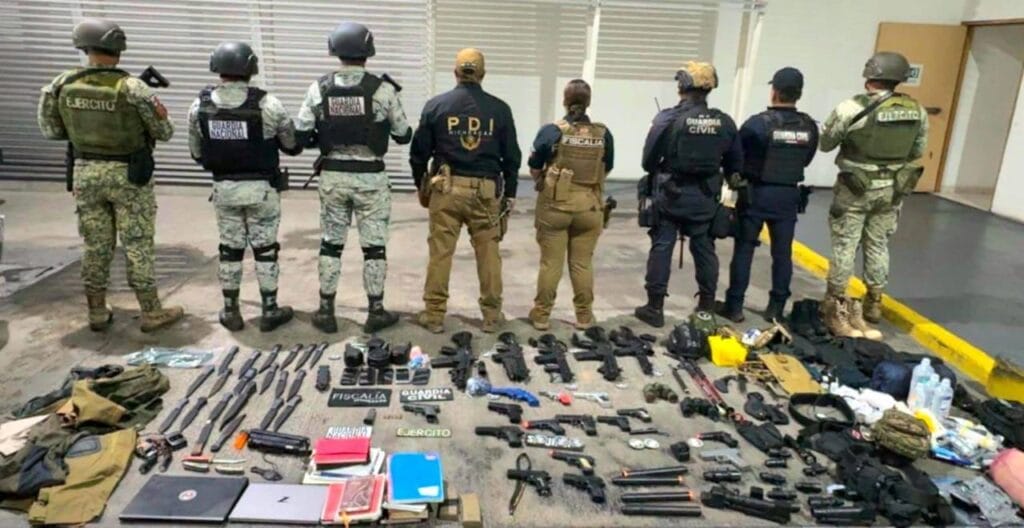 En el sitio fueron aseguradas una pistola calibre 9 milímetros, 19 réplicas de armas de fuego, cuchillos y navajas. Los 38 detenidos, uno de ellos de nacionalidad estadounidense, portaban vestimenta azul y se identificaron como miembros de la iglesia evangélica fundada en México y encabezada por Naasón Joaquín García, actualmente preso en Estados Unidos por delitos de abuso y explotación sexual infantil.