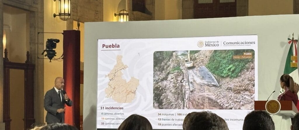 “Hay casi mil máquinas, entre trascabos y tractores, trabajando en la reapertura de caminos y en la evaluación de puentes dañados”, aseguró Sheinbaum, al tiempo que adelantó que la SICT prepara los proyectos ejecutivos para la reconstrucción de infraestructura siniestrada.